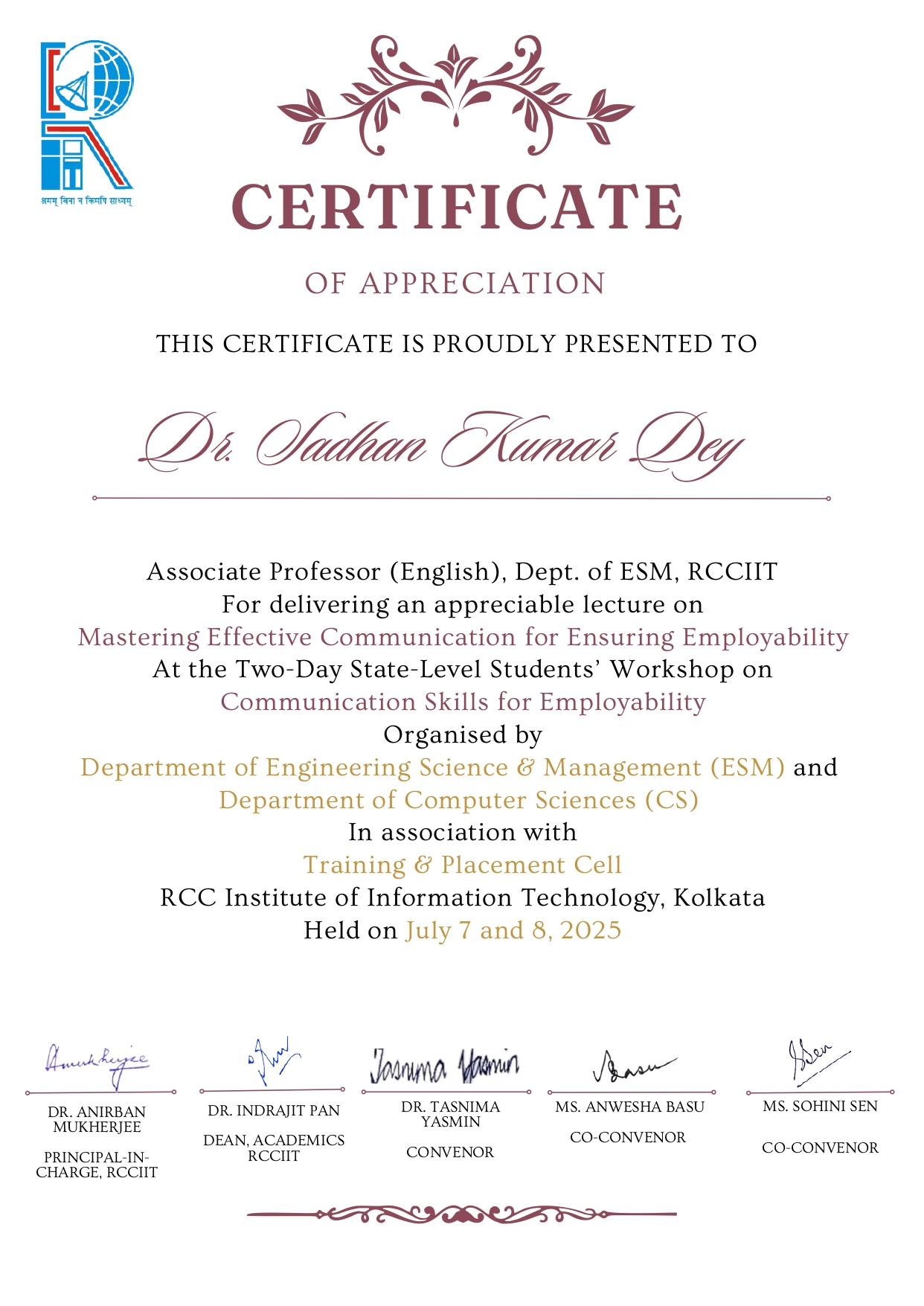 Designed New English Syllabus of English for West Bengal University of Technology as Member Secretary of the concerned Board of Studies